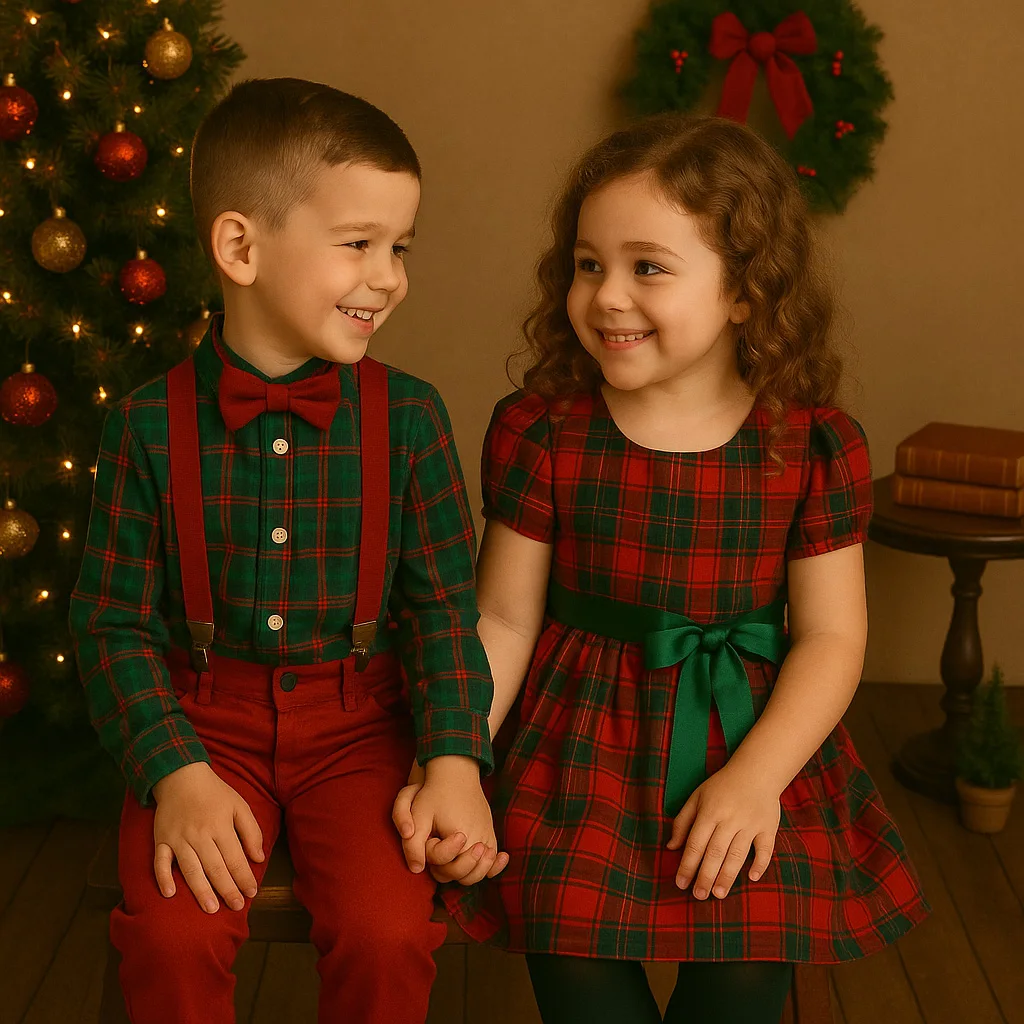 Wholesale Christmas Plaid Dress for Girls Kids Holiday Party Dress Children Outfit Dresses 2-10Y Factory Direct OEM/ODM